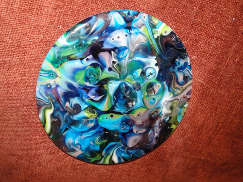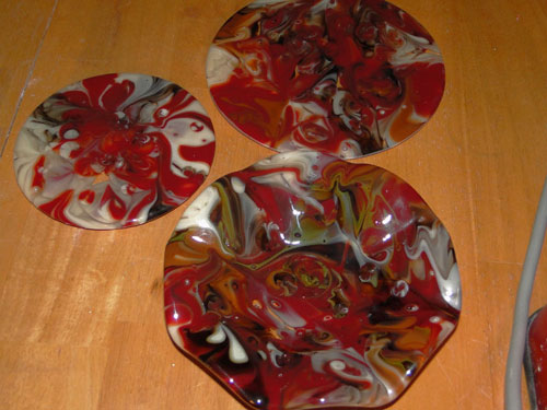 I’ve been running the production kiln with lots of blanks, so I’m hoping to have another big (coffin) slump run next week. I’m fire polishing pendants and spoon-rests now …