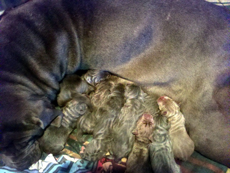 We have puppies! … Oh my – do we have puppies. Olivia is still delivering, but at this point, we’ve helped bring 10 new babies into the world! At 4am this morning, the text messages started flying, as John was keeping me up to date on her progress. As a first time Mom, Livvie is doing great … 10 babies in just over 4 hours. She’s cleaning her crew, feeding them and loving on them. John is wiped out – (he is sooo NOT a night-owl) but he’s hanging in there like a trooper.
