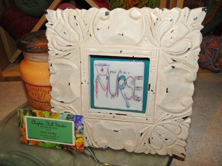 I have my coffin-kiln running another de-bubble program for the spoon rests, night lights and recent blanks. And, here’s my completed Nurse Plaque – just in time for Nurse’s Week. ![]()