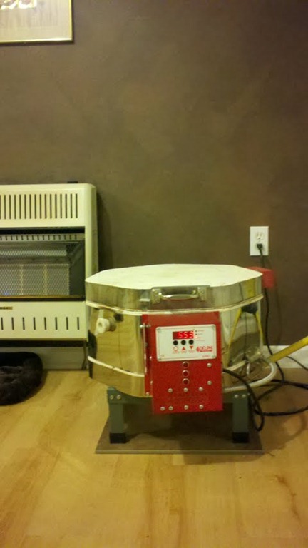 FINALLY have the production kiln running – as I type. AND … the coffin-kiln is loaded – ready to start tomorrow morning, when I can be in the studio for at least the first 8 hours (until we hit the magic 1500 degrees) to make sure it’s new home can take the heat.