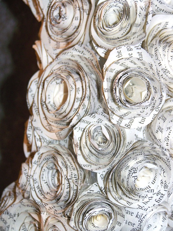 And the final decorative touch for my studio bathroom has arrived. DH loves to tease me about no wall being untouched – that I have a fear of naked walls … I suppose it’s true, as this ‘spot’ in the bathroom was begging for special bling. I discovered this on Etsy, and special-ordered it. Being that many pieces I make are repurposed, as well as much of the furniture in the studio – I think this is perfect. It’s a wreath made out of recycled book pages …