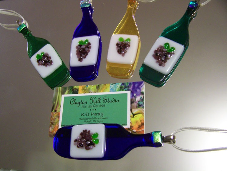 I just moved on to other projects, letting the set-backs ruminate for a bit … They’re almost cute – darn it! Here’s the other stuff we’ve been working on this week: Wine bottle ornaments; future Christmas tree ornaments (you’d think I was working towards Christmas …???); mini embossed frames; a new night light/sun-catcher project; and DH’s latest stained glass window design (which will hang in our family room – ummm, by the pool table) … I do wish he’d move along, as I have so many other ideas for him! ![]()