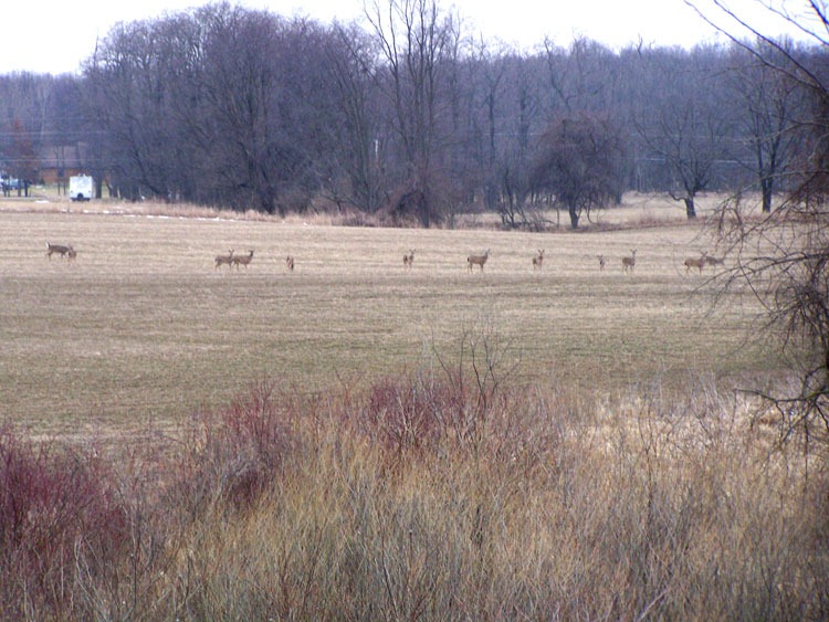And I’ll leave with a picture from the view of my studio deck. Apparently there was a ‘town meeting’ earlier this week (before the snow hit AGAIN!) – and the deer were gathered en-mass in our field. While I didn’t get all of them in this photo, there were some 25-30 deer present for the meeting. ![]()