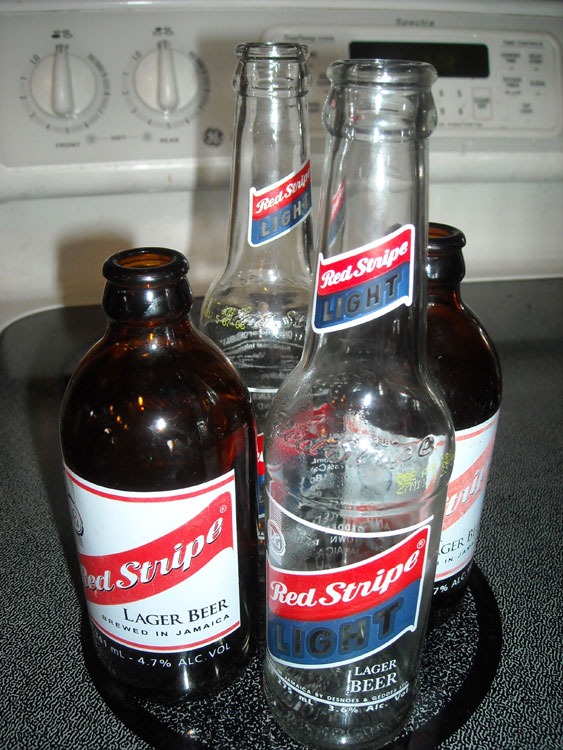 I have more Red Stripe and RS Light bottles for slumping … more Rum Cream, Liquor 43 and (a new one) Mango Liqueur to sip at (LOVE the shape of that bottle!) … and I hope to have some studio time tomorrow, before heading back to the reality of ER nursing. But for now, I have my kids (two and four-legged) to catch up with/love-on … and I’m happy! (BTW – so is DH …) ![]()