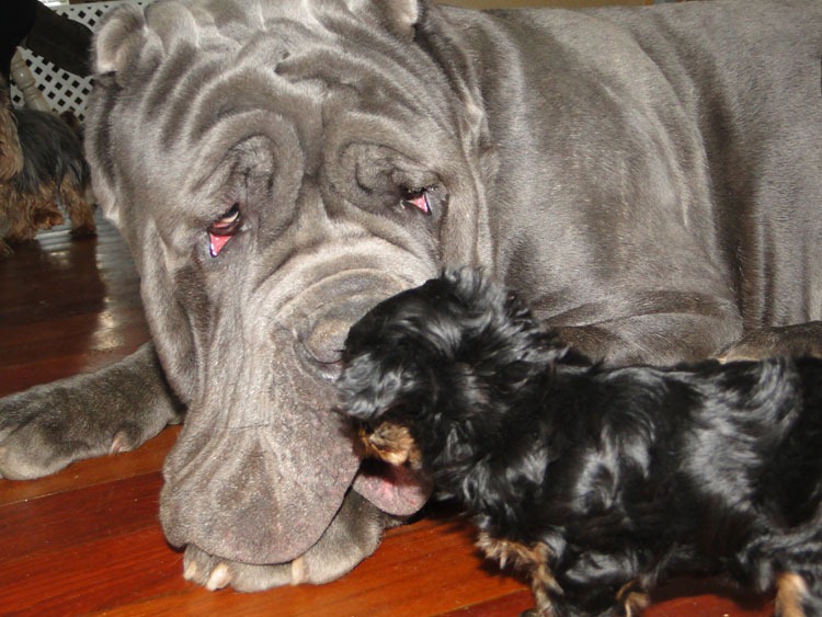 How can anyone concentrate when surrounded by such cute four-legged kids? I have pictures … Zeus loves babies – He couldn’t get enough of Yogi Bear (4.5 wk old Yorkie):