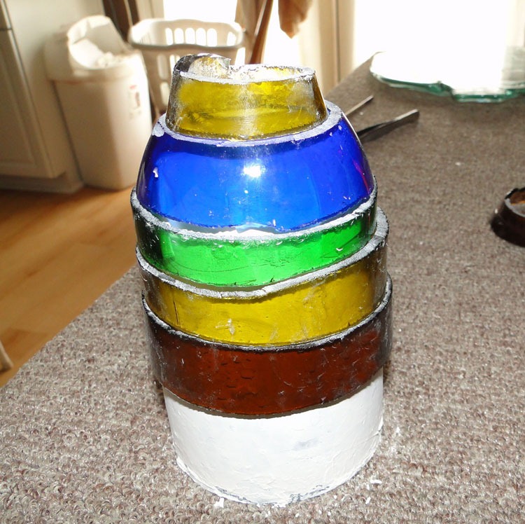 One of my books (by Boyce Lundstrom) shows it’s possible to do a bit more with recycled bottles than I had previously realized. Armed with this knowledge – I’ve been slicing up bottles like a wild-woman. I almost like them … It will require more experimenting.