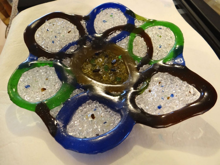 My bottle bowl experiment is done. I like it, but not well enough to offer up to the shops. It’ll sit in my studio to inspire other ideas … or catch dust. Whatever … ![]()