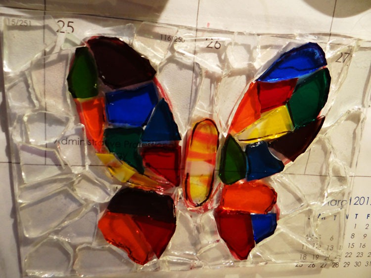 It’s helping … I’m making progress on my butterfly. It’s ready for ‘grouting’ with frit so it can be fired.