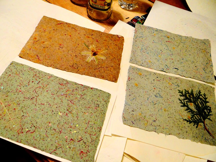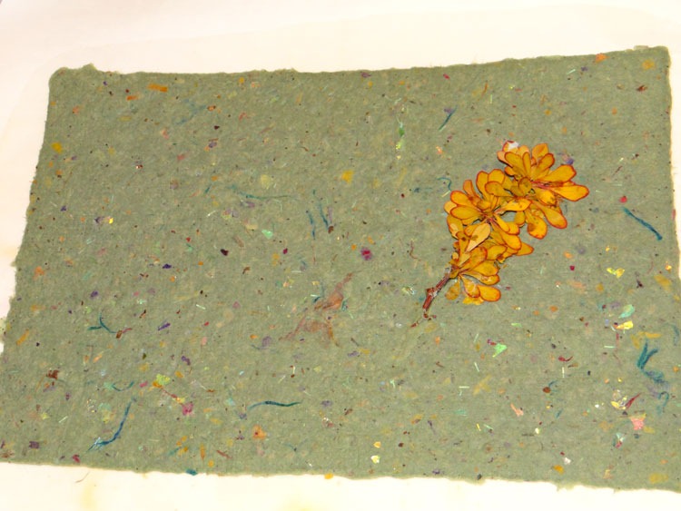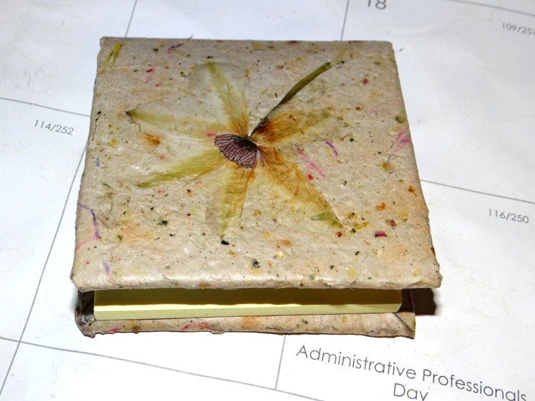 I’ve been making papers and used one to make a cute ‘lil post-it book/holder/thingy (and YES, the pressed flower is UPSIDE DOWN! Dohhhh!):