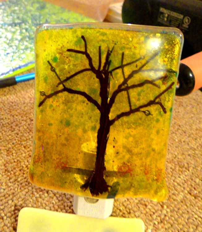 And the kids hung out (in the studio) with me, showing (teenage) interest in what I do here [VERY short-lived]. While I haven’t hooked them into becoming next generation warm-glass artists yet … my youngest daughter decided she loved this night-light, so it will be gracing her bedroom wall now.