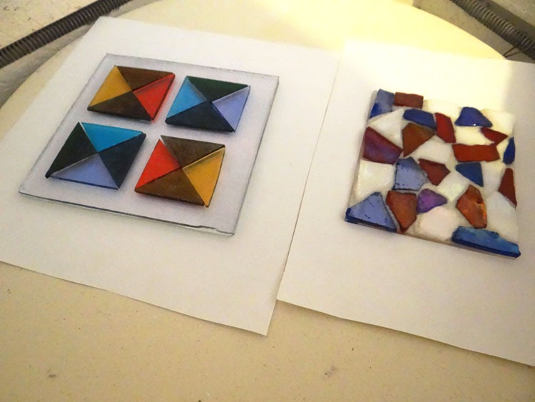 And it’s slowing me down. But – better safe than sorry. I was just about ready to run my ‘mosaic’ and frit coffin load when it occurred to me that I might want to full-fuse the bases to the tops (of about 1/2 of them) BEFORE I ‘tack fuse’ (a little hotter than that, but same difference in this instance) …
