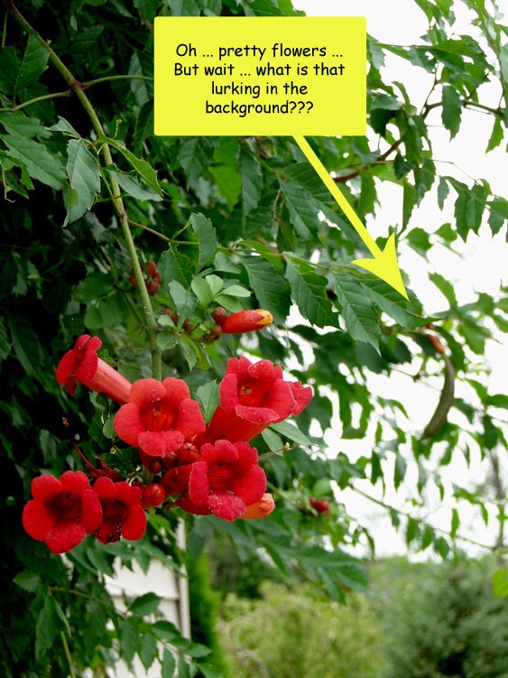 Anyway, a nice routine. Not much studio time, but we were able to go for a little walk around the yard last night when I discovered this … WHAT THE HECK IS IT??? It’s on my trumpet vine … and I’m a little bit afraid of it.
