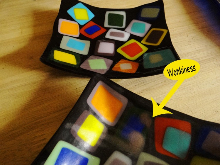 And, here’s my Amish(-esque) Quilt squares: One came out nicely, the other one has some wonky-spots on it. I tried to get fancy and put an anti-devit/aid-in-glossy-surface prep on it … now I know I won’t be doing that again. (So, I have another studio-bowl to add to my collection …)