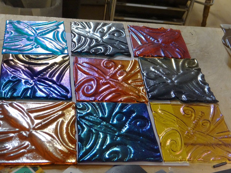 And while the rest of my studio is in desperate need of cleaning, tonight I decided it was time to play. Not sure just what the end design will be with these dragonflies … but I like them; And I’ve got a little jewelry/knick-knack tray going into the baby kiln … fingers crossed.