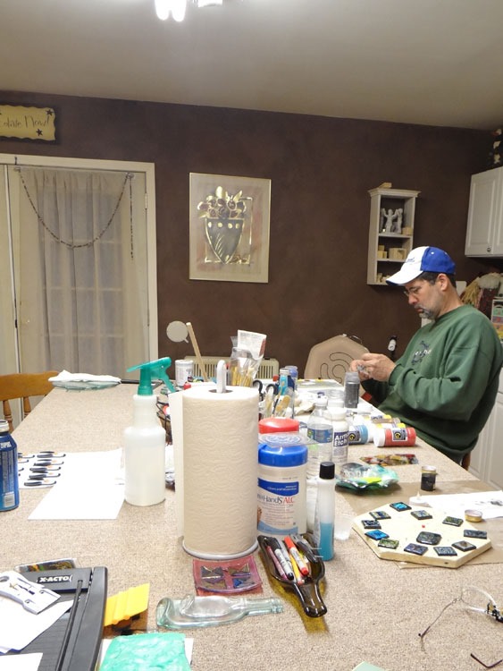 But, in the meantime, I’m ‘spring cleaning’ in the studio … while DH tries his hand at frit envelopes … Smile  Pretty – and note the very clean, and fairly uncluttered work table he’s sitting at!