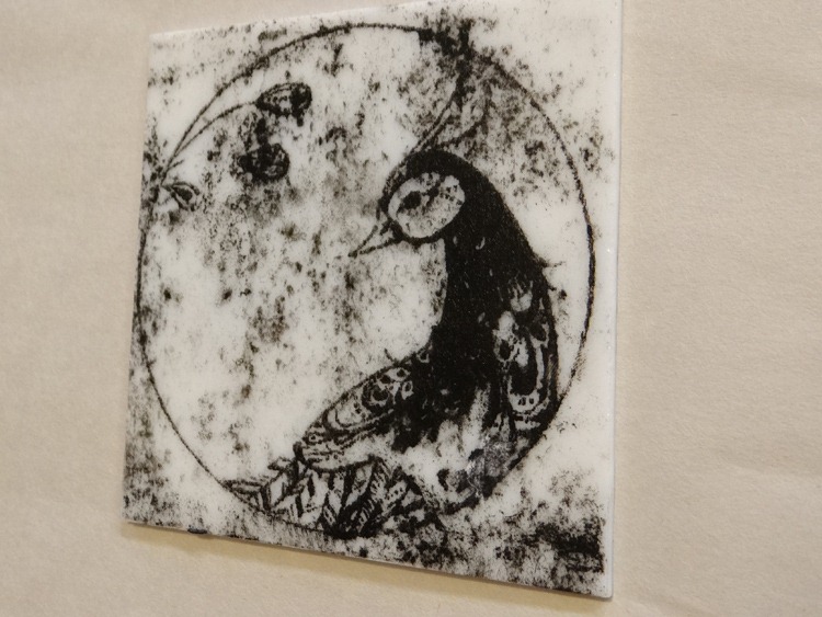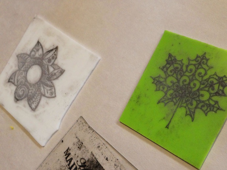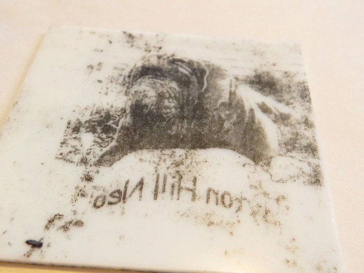 And, then I played with transferring images onto glass (with gum arabic) …. Here are my first and second attempts … not so hot, so I didn’t bother to finish them. (Lettering needs to be reversed … DOH!)