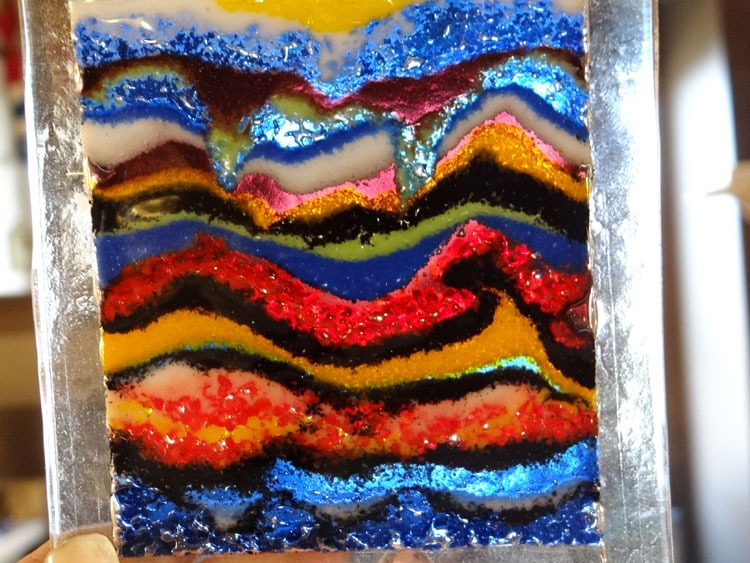 To fix my mood, I spent the evening in the studio. Here is DH’s frit envelope, now fired.