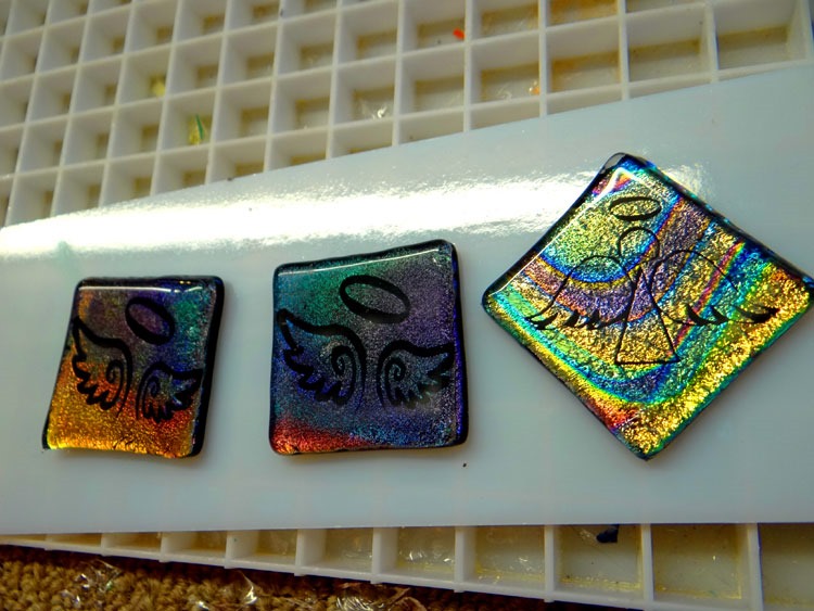 I have three kilns running! Yea BABY!!! More platters, dichro cabs (with some requested Angels), and a few experiments. Love it!