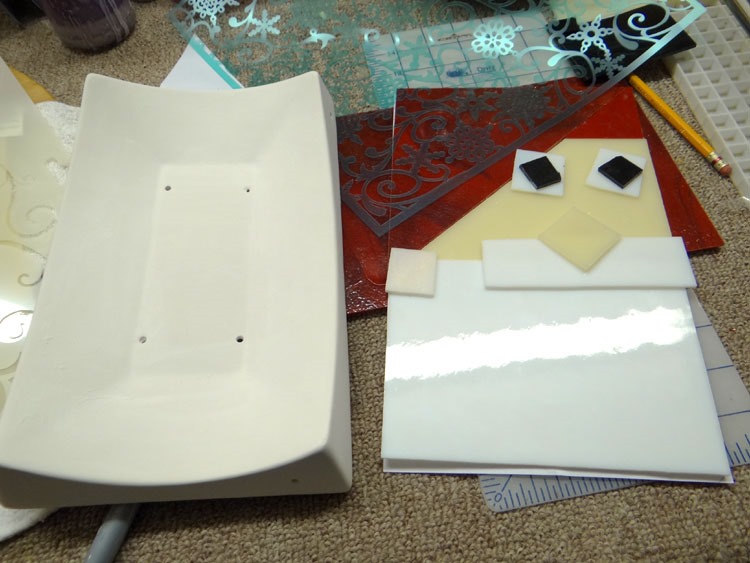 Fortunately, after prepping for the shows, I’m all set with ornaments for this holiday season. But, I am working on a few Christmas-themed platters and plates. Here’s a rough version of a Santa platter I’m working on.