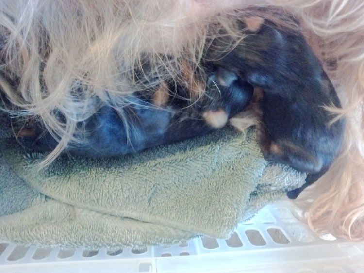 We have Yorkie babies too. Three little ‘doberman mice’ joined our crew. So far all are doing well, as we adjust to life on the outside. Here’s a quick pic of two of the baby furballs …