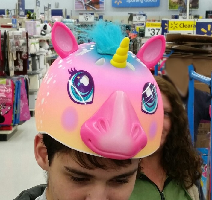 We had some fun Christmas moments this year: We (as a family unit) decided we needed to hit a few more stores on Christmas Eve … It’s quite an adventure if you haven’t tried it. All sorts of interesting people-watching to be done, including us at times: We found a hat just made for modeling (that we also had to purchase!), along with a bicycle helmet that my son thought he wanted. (We ultimately refrained. And, I’m happy to say the kids are showing no signs of lice/ringworm/etc. at this point. We’ve also had a talk about putting public things on your body …)