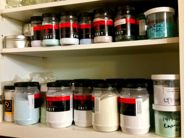 It’s all good … I found enough to experiment. So, I spent a few hours watching over my kiln/studio – to make sure she didn’t CATCH ON FIRE … and experimented. Turns out, I might be able to plot, frit and fuse … all with glass powders. Maybe … Here’s the ‘speriment’ – at 600+ degrees: