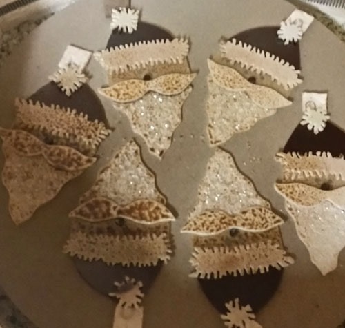 Also – when you can’t learn new techniques … you make ornaments. ‘Christmas in Jul … April’ … AKA – filling custom-orders: Santas – cuz I can! (Last pic = Santas at 500+ degrees with hairspray burning off … Oops!)