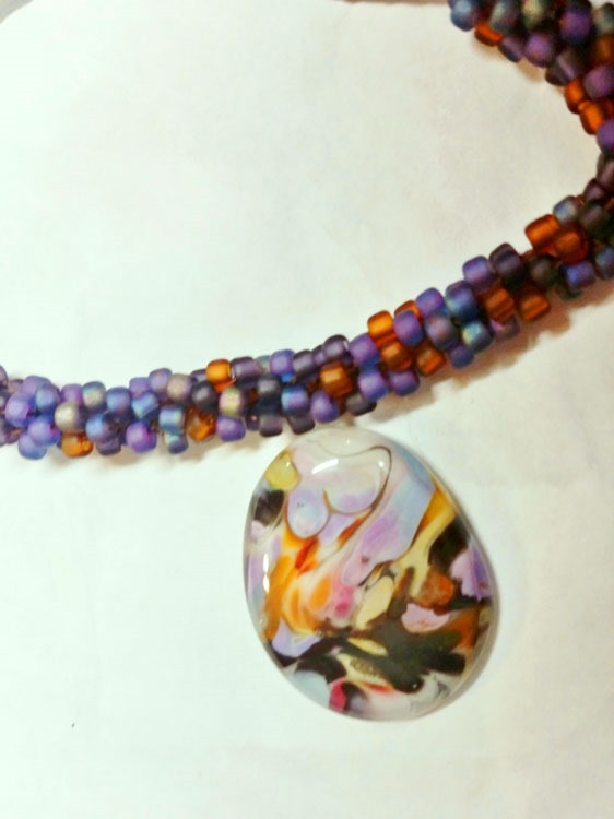 In the meantime, I’m making jewelry. And – to be fair, I am contemplating how to incorporate my glass cabs in a few of them. I’m also making earrings, bracelets, metal pendants and necklaces … Oh my! (BTW – that first necklace is made with 8 strands of 11/0 beads, all braided together ALA kumihimo-style. I’m certain my eyesight will return at some point …)