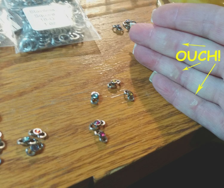 I also pulled out supplies to work on a beaded bracelet, crystals and pearls … pretty. It gives my hands a break from forcing stainless steel into shape (… I’m sporting chain maille blisters). Ouch!