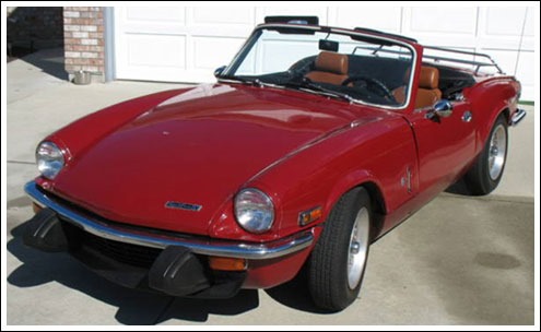 The garden is producing (we have PURPLE beans this year, oh la la!). Our soon-to-be momma, Blondie is uncomfortable and close. We’re sneaking in calcium supplements with chicken, yogurt and cheese as often as she’ll let us … The twins are gearing up to take their senior photos. And DH is working on my (mid-life-crisis?) car. It’s a Triumph convertible. He bought it about 18+ months ago. I didn’t ask for it, but now I can kinda picture running around town with it … Hmmmm. (Not my photos, but this is what she’ll look like:)