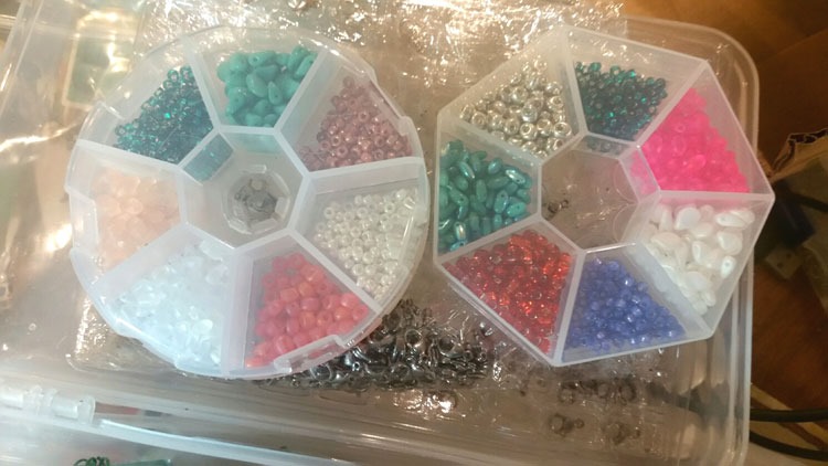 While not quite healthy, I’m not dead either … so, I’m playing in the studio, as I mentally prepare for another fun-filled ER nurse weekend tour. Sandblasting, earrings and kumi – oh my!