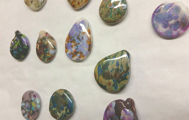 And, DH has been playing, too. His take on embossed thinfire (he painted both sides!)and new torch cabs …