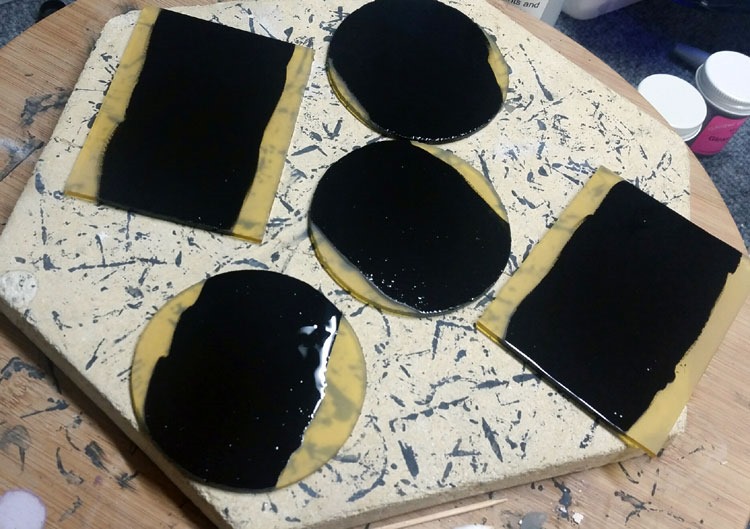 With 3 days to go before our show, I’m still playing with new ideas. I’ll get these in the kiln tonight, and should still have time to get everything slumped, packed and ready to roll. [Famous last words???] But, wow – I like them!