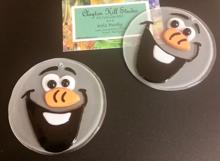 I’ll slump the bowls tomorrow, and sandblast the yellow/black pieces from my last post for more ornaments and night lights (which are cooking in the production kiln now). Tonight, I am packaging up ornaments … Tick-tock – it’s all good!