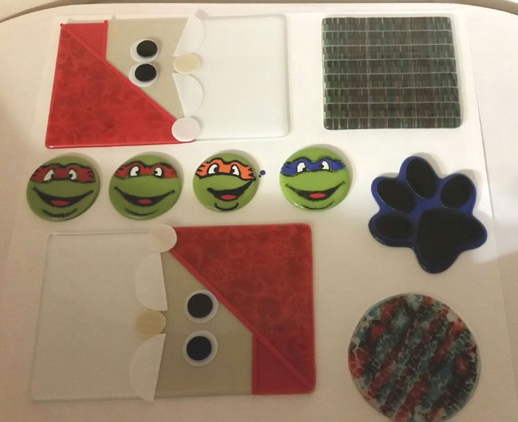 Yep, we’re loaded and ready to go. So, sure – I’ve got two kilns running with ‘last minute’ glass … DH spent the day loading our trailer, checkin’ the tires and telling me to quit ‘making stuff’! (Umm … Never!!!) But, look at what we made!