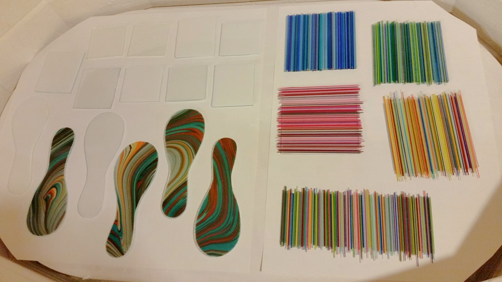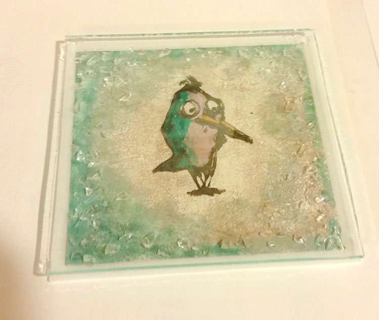 And, I did a little painting tonight. We’ll see what the kiln gods think … but I like what I have started. I didn’t care for the diluted bubbles the necessary shims made in my last attempt, so now I’ve added a whole bunch, to make it look like it’s a part of the design … Maybe … I hope … We’ll see …