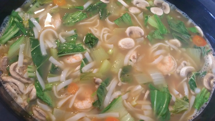 I’ve done some baking/cooking. We tried the Pina Colada cake. I like it warm, but doubt that we will make again. Then we tried a soup – Sausage, Spinach and White Bean. Love it – although I didn’t take a home-grown photo of it. (It’s a crockpot recipe – so easy and good!) Made a 3 pound meat-loaf, my way! This means no actual recipe – just combining all left-overs from the fridge (like Bush’s beans, Mac-n-cheese, baked potatoes and the rest of a Papa-provided industrial-size bag of potato chips) with onions, spices, sauces and ground sausage, turkey and beef. Amazing – and the meat loaf sandwiches are sinful! I hit the gold again – according to my family – with this recipe (Asian Noodle Soup, and my photo), adjusted with home made chicken stock and added mushrooms … YUM! So, all are well fed in my house this week.
