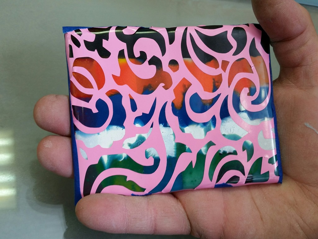 And, my enamel experiment from weeks ago, finally stenciled and blasted … What to do with it now? But, I have more stencil/blasting ideas … OH MY!