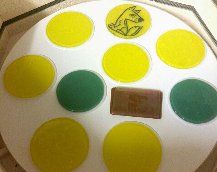 Yes! My studio still needs cleaning, but … I have a whole mid-size kiln shelf of hot cabs just waiting for ‘GLAMOUR’ … So, you know – thank goodness I didn’t put all those frit jars away!