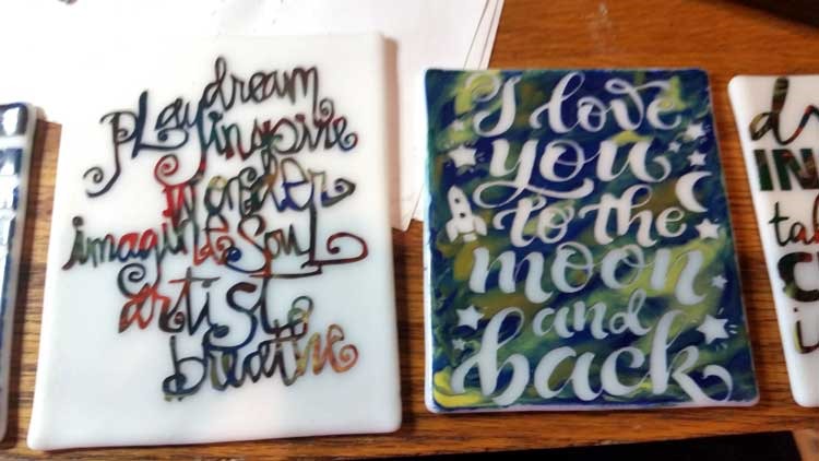 And, I worked on a few (dozen) more … I have it down to a well-tuned process, and have a few more ideas in the works. Just waiting for a couple of items to arrive … Doh! So far, I’ve made them all with my most comfortable glass enamel. I need to bust out some of the others and really play with color (Colorline, Reusche, Ferro Sunshine), or at least do some trials, gain some confidence with those brands …