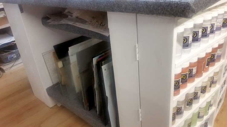 I’ve been tinkering with rearranging/organizing and cleaning the studio. I finally utilized my coe90 sheet storage. As a predominantly coe96 girl, I didn’t realize I had that much … DOH!