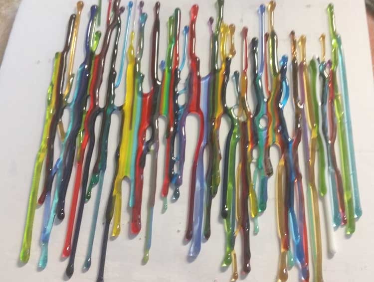 I’m still making component parts for more color themed tiles … I love the last photo – dripping stringer art … ![]()