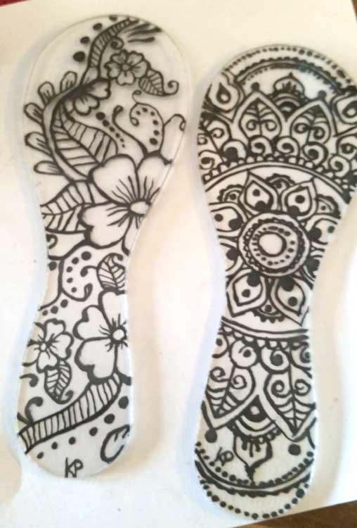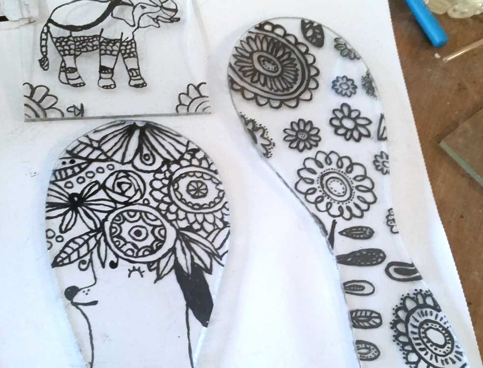 And, I’ve been playing with reverse enamel glass painting … I’m starting to get slightly better control of my line thickness. Now to fire a few of these to move to the next step … Time to get busy!