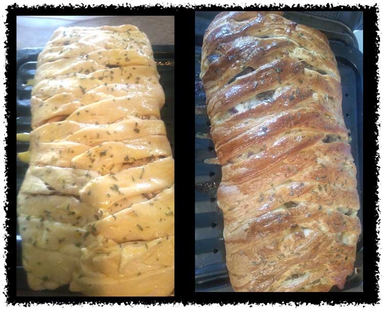 Our cheap-man’s stromboli (chicken & mushrooms in crescent dough ‘braid’) from the other night is good … The family says it’s a [not-so-healthy] keeper-recipe …