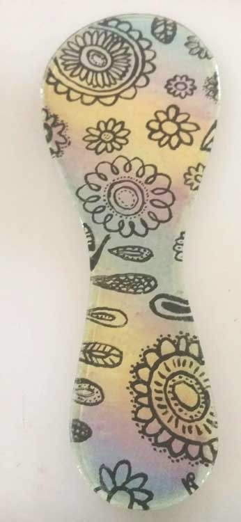 While I wasn’t so pleased with our last ‘cartoon’ spoon rest – I like the idea! Plus, I realize that I have enough enamels here to play with products and temperatures until we get what I’m shooting for … So, round 2 is in the kiln. Here are a few more options/ideas I have in-the-works …