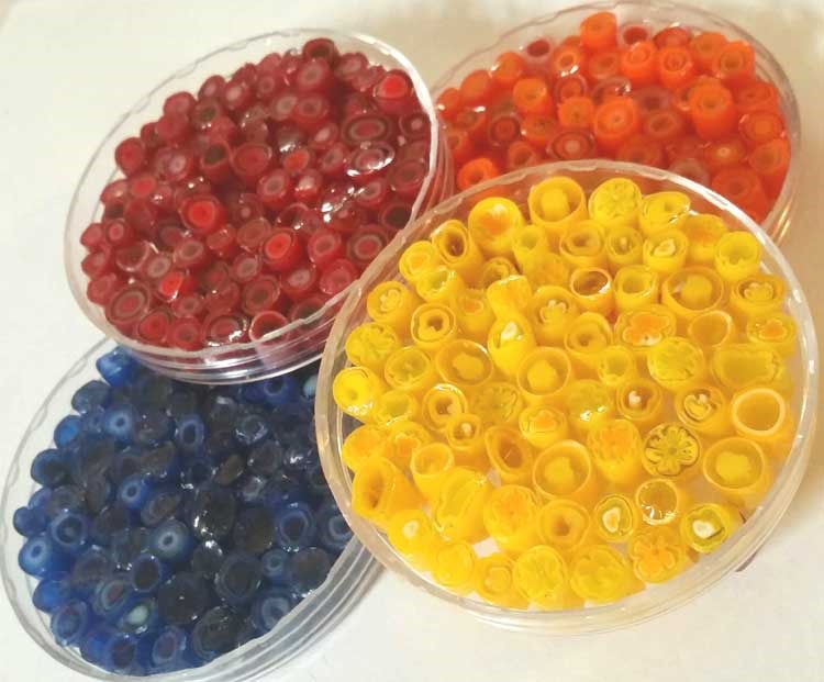 So, now I have my rainbow murrini (not all pictured here) … I have a few more must-do colors coming(!), before we will start on mixes …