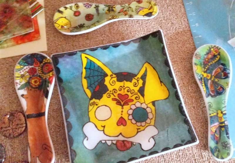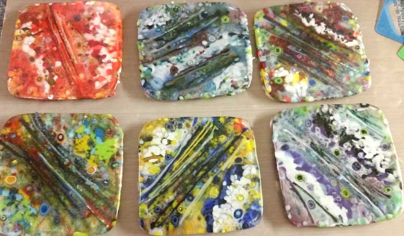 I also made my murrini/component tiles. That’s our ‘product’ in there. I know- such a silly thing, but it makes me happy! Now that I’m certain our murrine works without issue, I’ve listed a few colors for others to try. Check it our in our shop or on Facebook … Next week, I hope to start mapping out cabs on the tiles for jewerly – we’ll see.