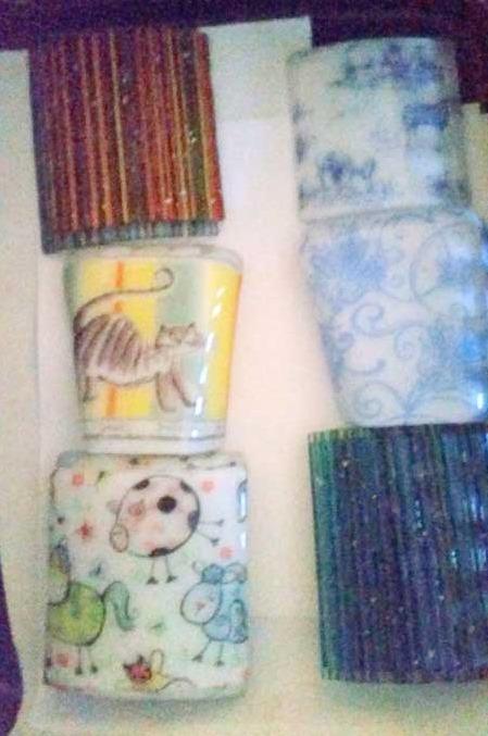 And, with a few days worth of 3-kilns running – I have our reverse enamel projects slumped and done. I’m happy, and DH says ‘They’re Great!’ [Wow! …] Along with a several new night lights slumped, waiting for assembly…