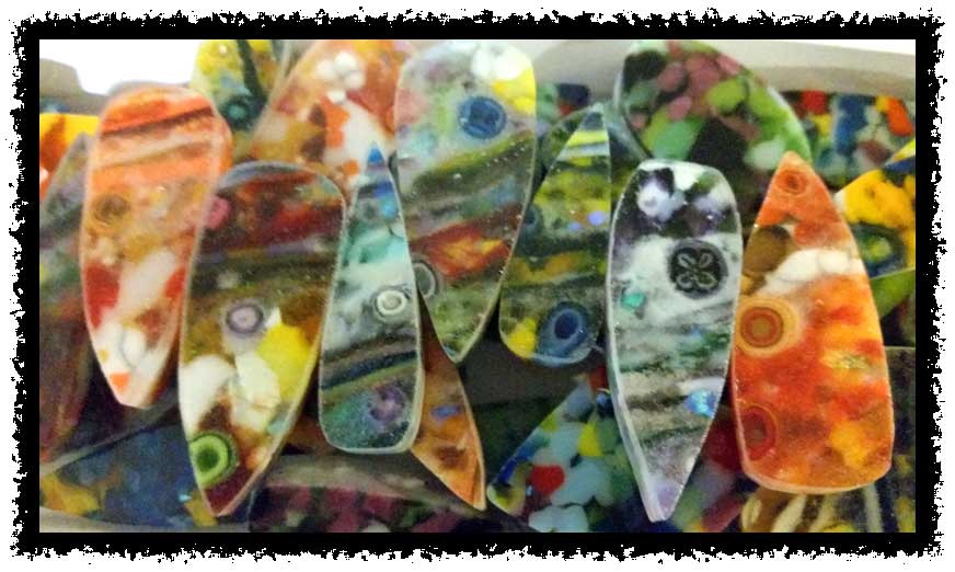 So, while I’m taking my turn at pup watch, I plotted out pendants from my murrini blanks. I luv them! [Not pictured playing, but here she is – and please, don’t worry … Chloe is loving her playtime with Ceasar and Victor. She will get to meet the babies when they’re bigger!]