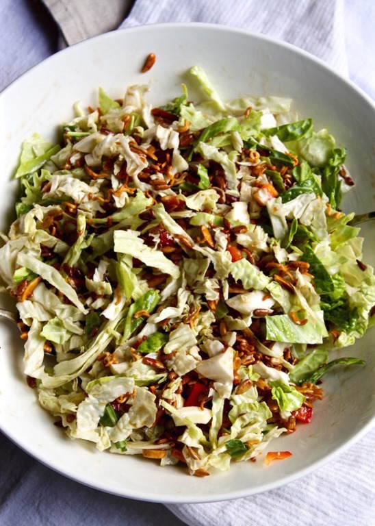 But – we did sneak out during a Mom-&-Pup nap, to get the garden tilled and ready for planting … LATER. Finally – to keep us all fed on-the-quick … I made up a double batch of cabbage crack (Napa Cabbage Salad – minus the bell pepper)! DH is promising grilled chicken and (our own) asparagus later today! [HAPPY]